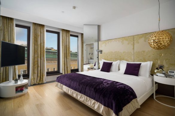 Светлый номер (33 кв. м) с окнами от пола до потолка с видом на знаменитые и самые романтичные петербургские крыши.